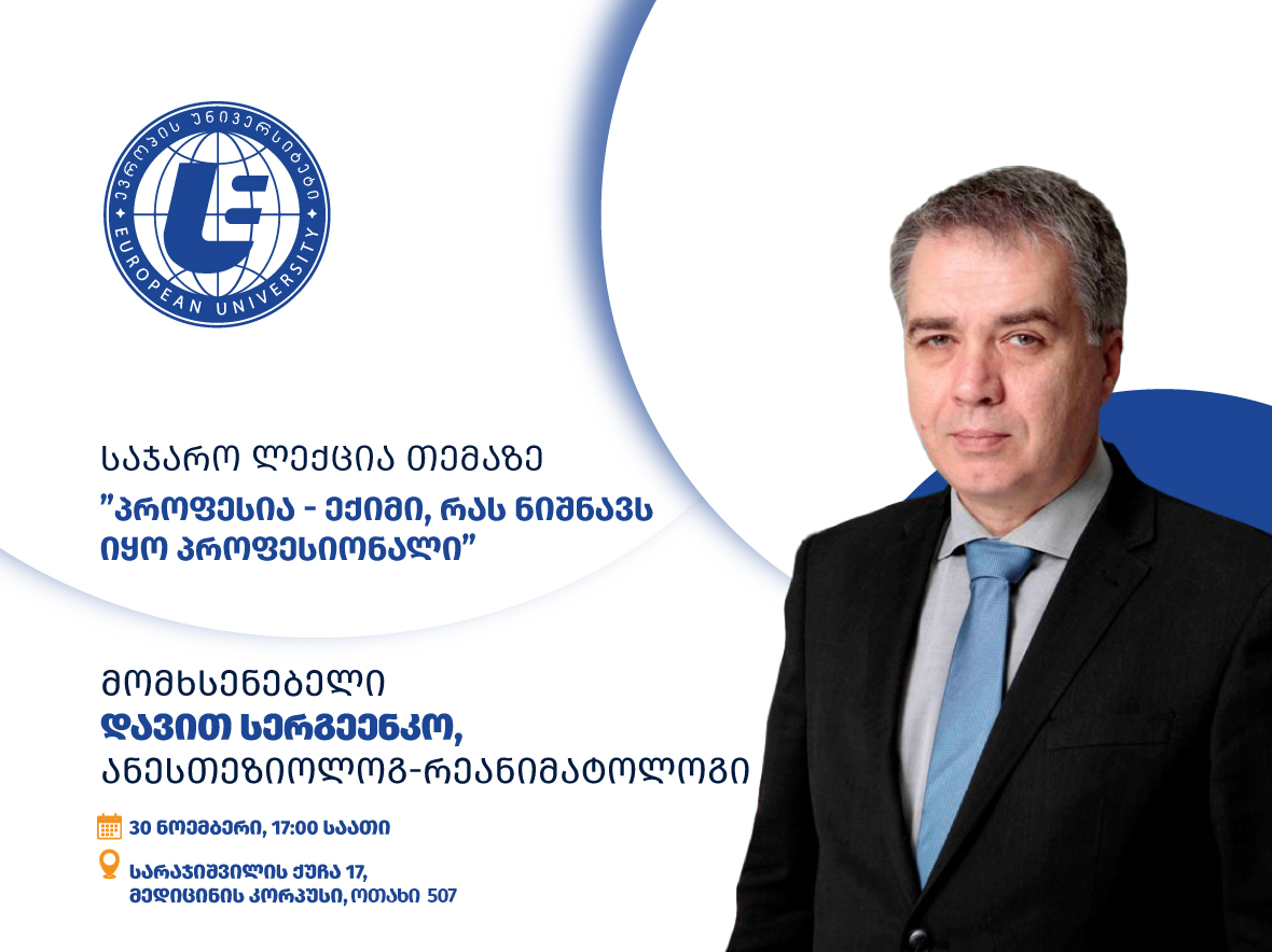 30 ნოემბერს ანესთეზიოლოგ-რეანიმატოლოგი დავით სერგეენკო “ევროპის უნივერსიტეტში” საჯარო ლექციას გამართავს.