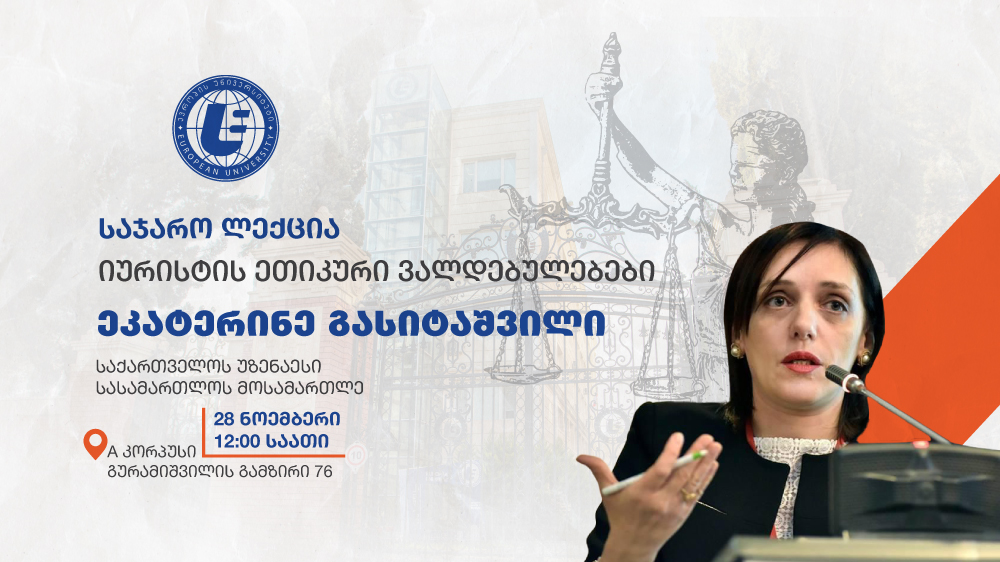 22 Nov სამართლის, ჰუმანიტარულ და სოციალურ მეცნიერებათა ფაკულტეტის სიახლეები “ევროპის უნივერსიტეტში” საჯარო ლექცია თემაზე “იურისტის ეთიკური ვალდებულებები” გაიმართება November 26, 2024 By laura სრულად წაკითხვა