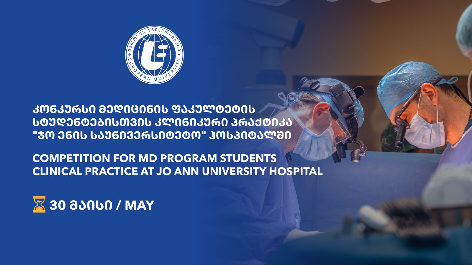 The Medical Faculty of the European University announces the competition to select students who will undergo clinical practice at Jo Ann University Hospital.