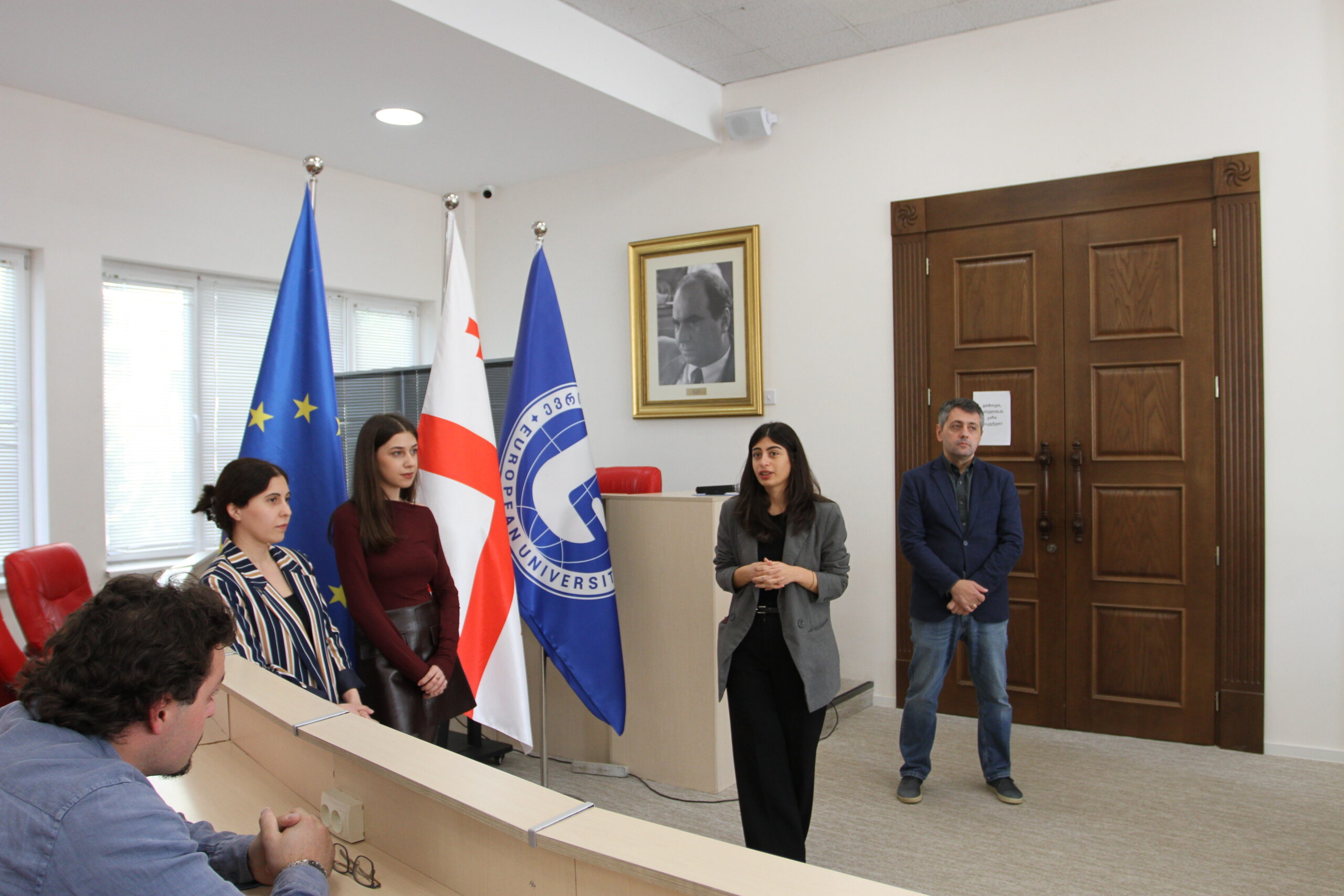 დამსწრეებს საერთაშორისო ურთიერთობების მენეჯერმა ნინო ჩანადირმა “ევროპის უნივერსიტეტში“ არსებული საერთაშორისო შესაძლებლობების შესახებ პრეზენტაცია წარუდგინა.