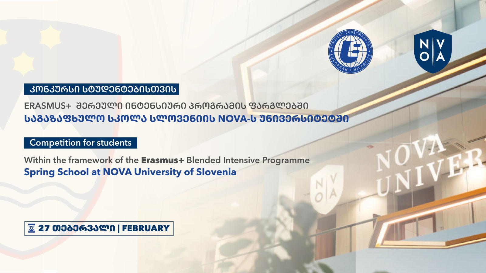 Erasmus+ პროგრამის ფარგლებში სლოვენიის NOVA-ს უნივერსიტეტში საგაზაფხულო სკოლის გასავლელად კონკურსი გამოცხადდა