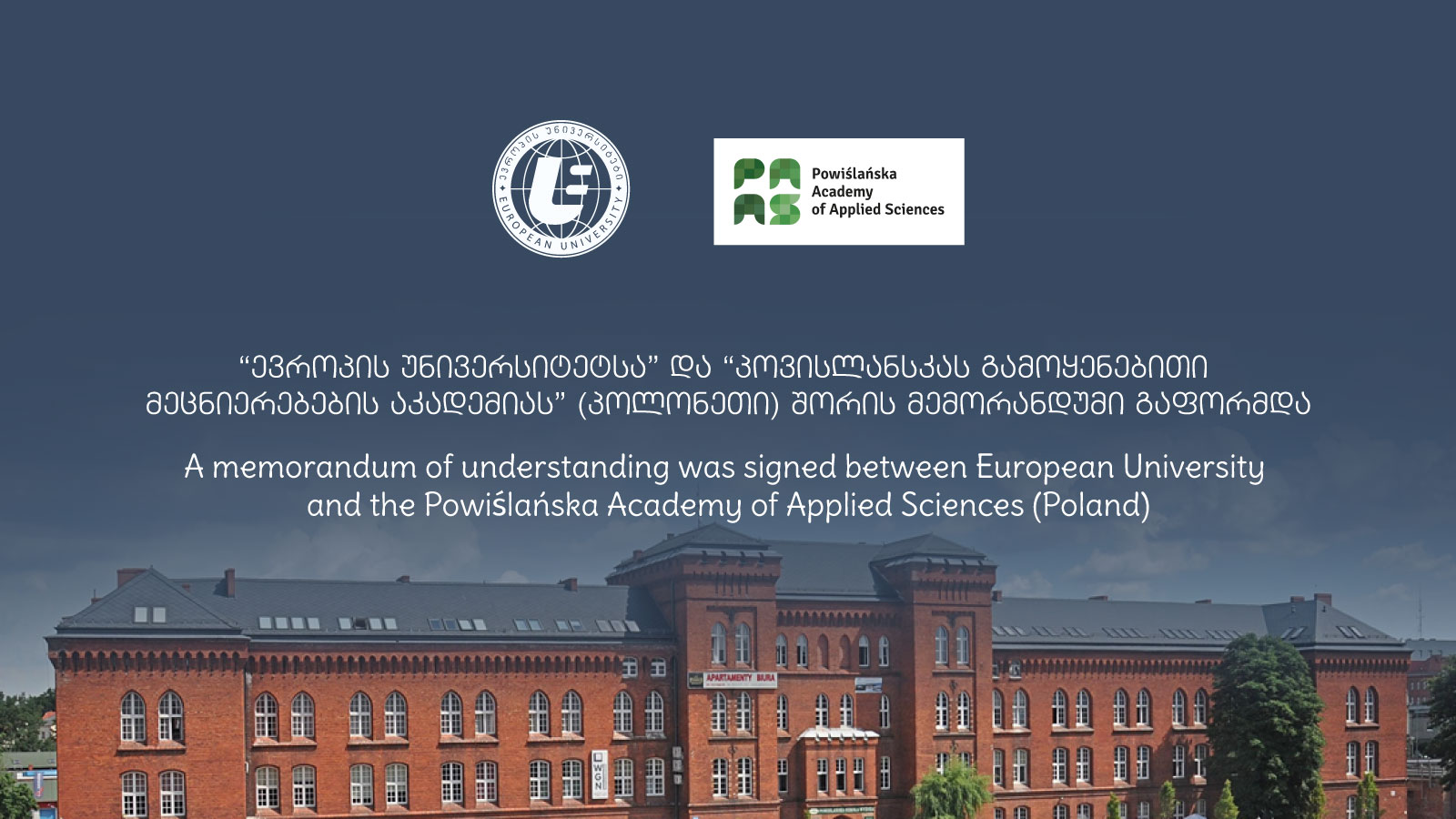 “ევროპის უნივერსიტეტსა” და “პოვისლანსკას გამოყენებითი მეცნიერებების აკადემიას” (პოლონეთი) შორის ურთიერთთანამშრომლობის მემორანდუმი გაფორმდა.