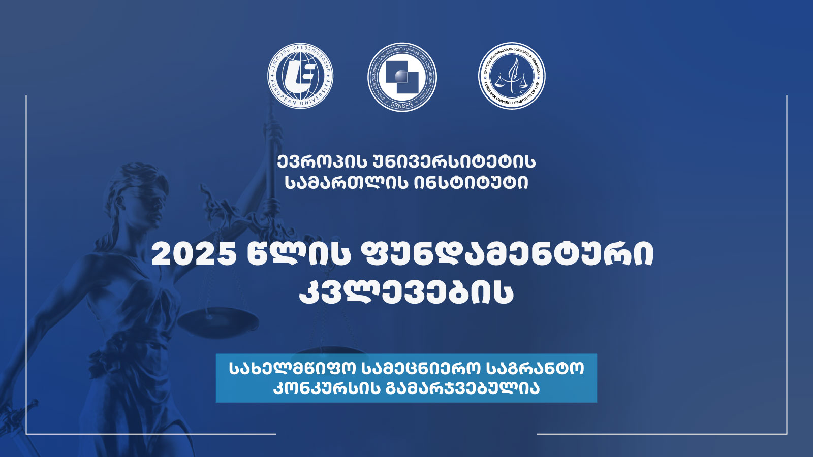 “ევროპის უნივერსიტეტის” სამართლის სამეცნიერო კვლევითმა ინსტიტუტმა ფუნდამენტური კვლევების საგრანტო კონკურსში გაიმარჯვა