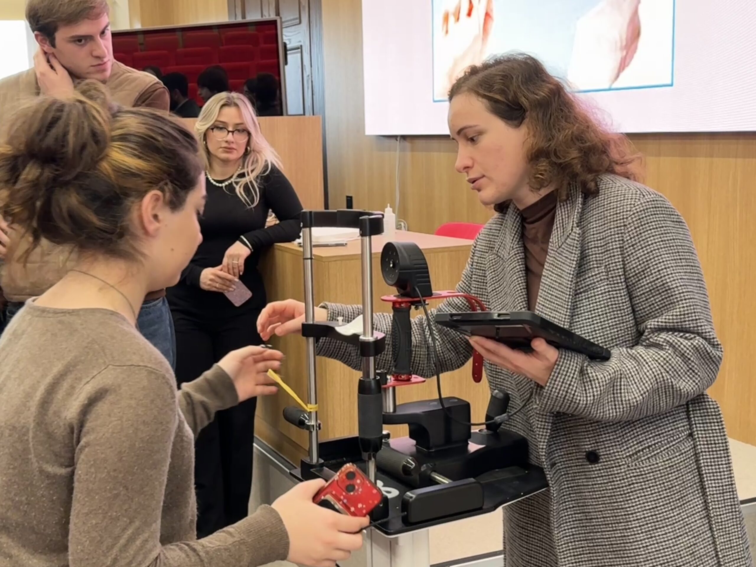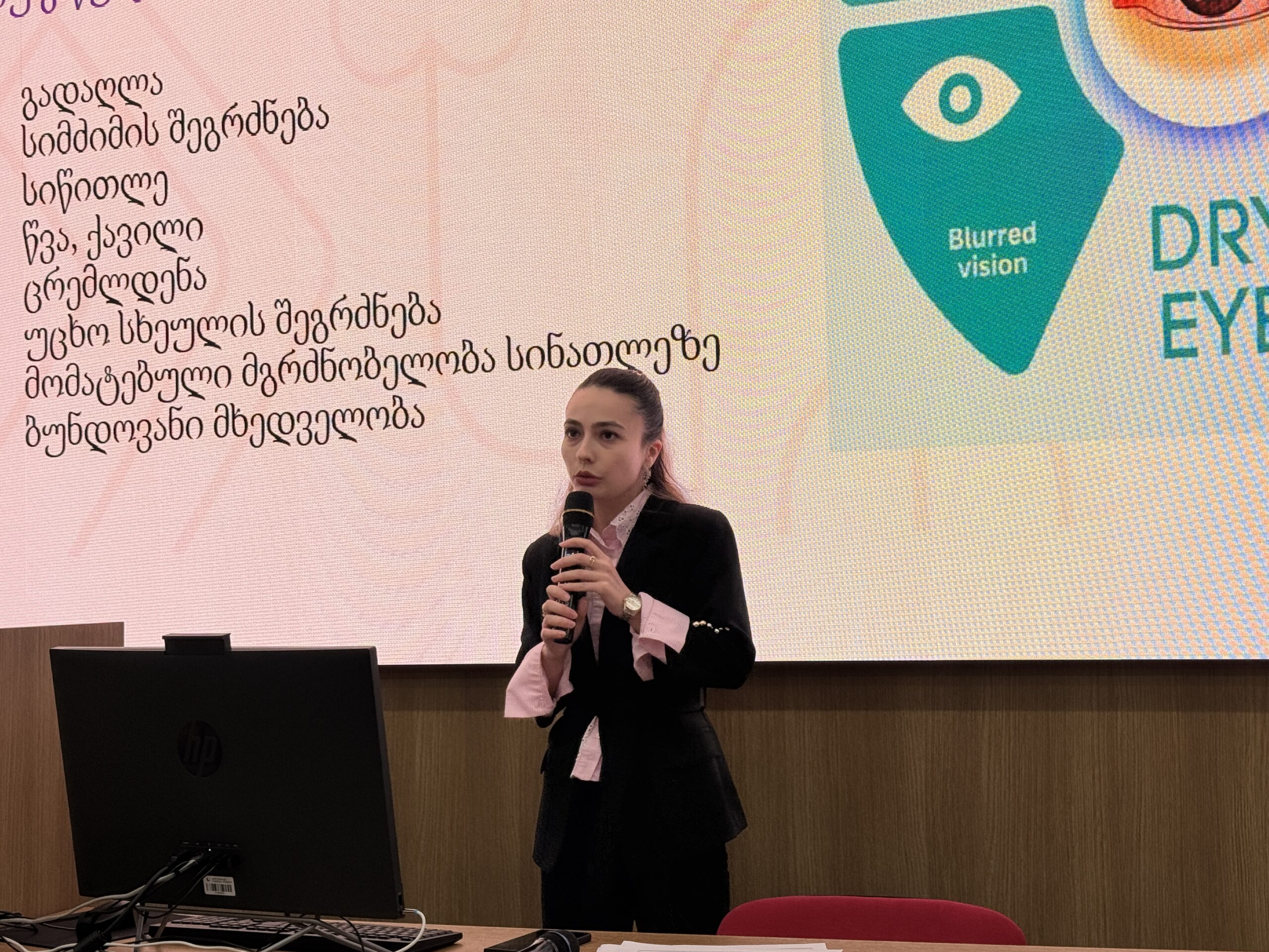 შეხვედრის დასასრულს სტუდენტებს მხედველობის უფასო სკრინინგი და მშრალი თვალის დიაგნოსტირება ჩაუტარდათ.